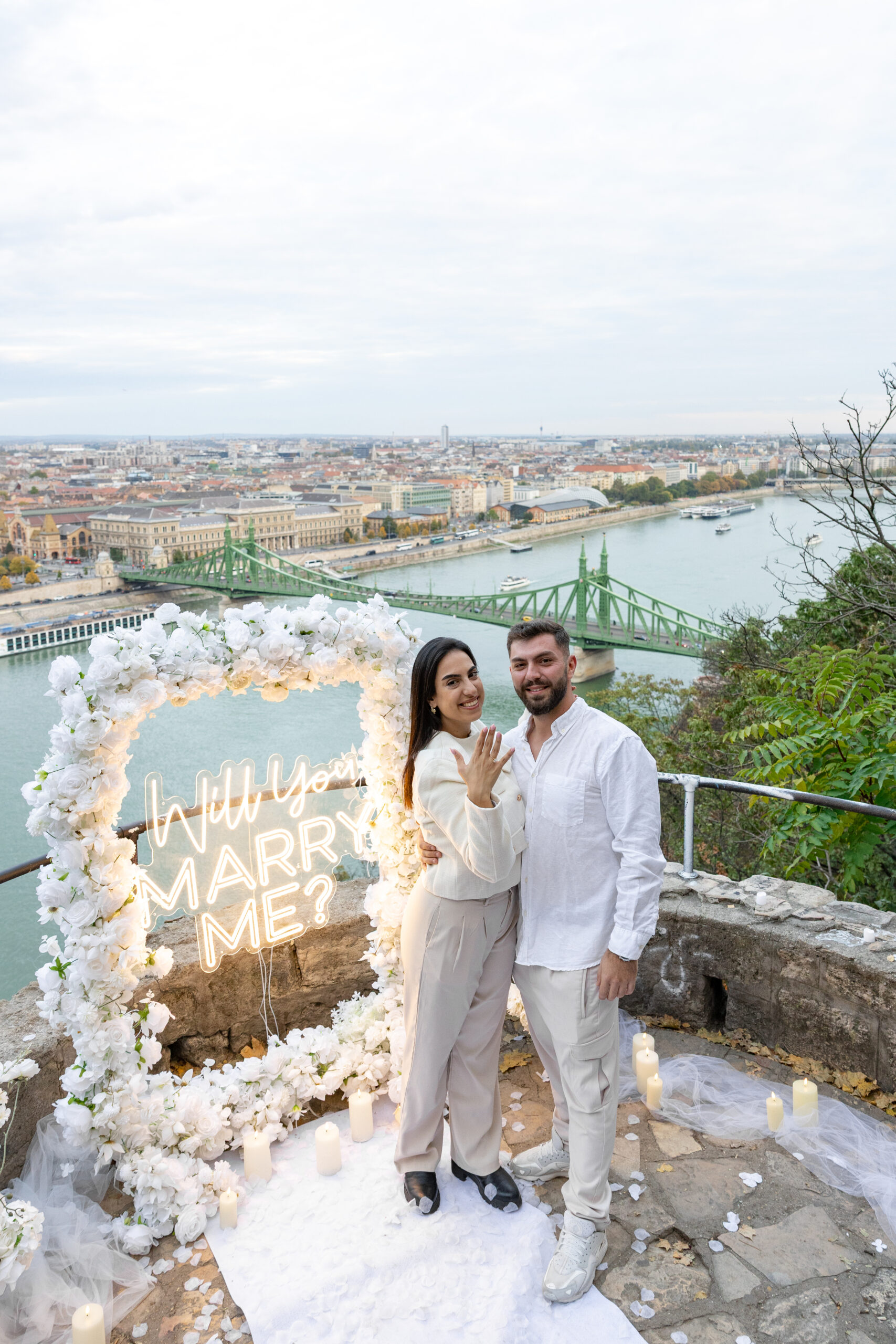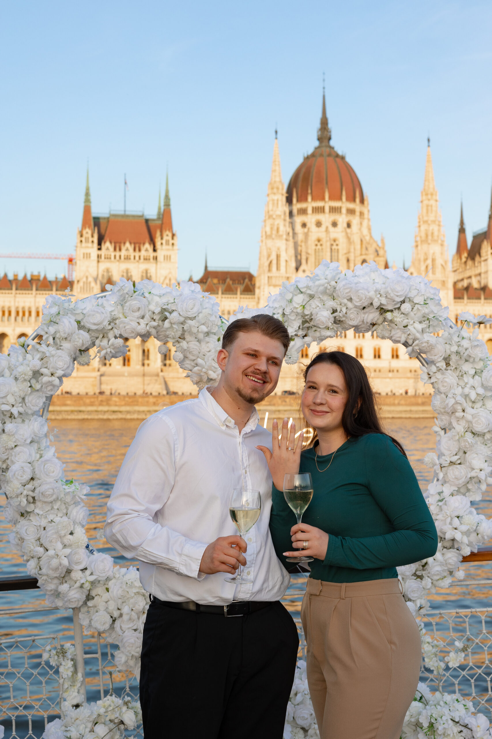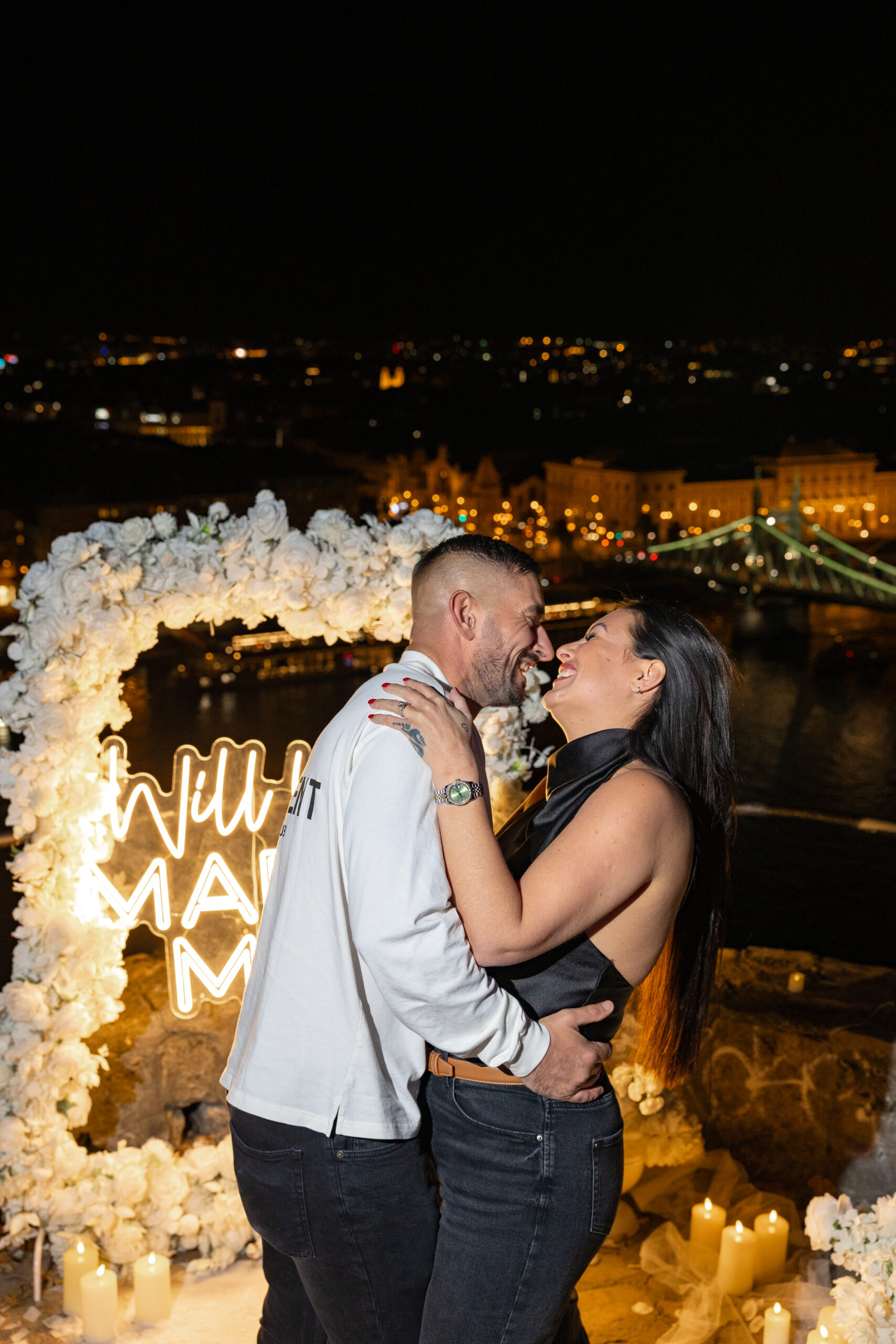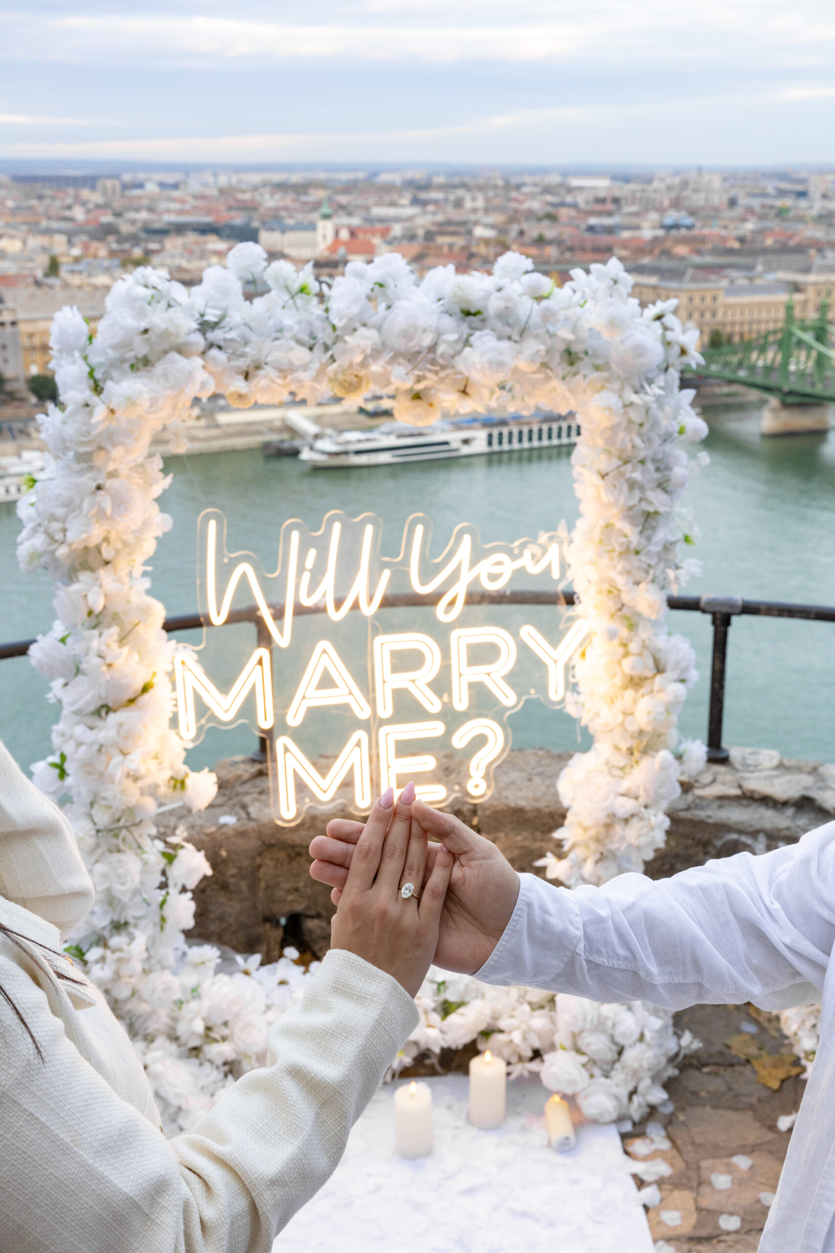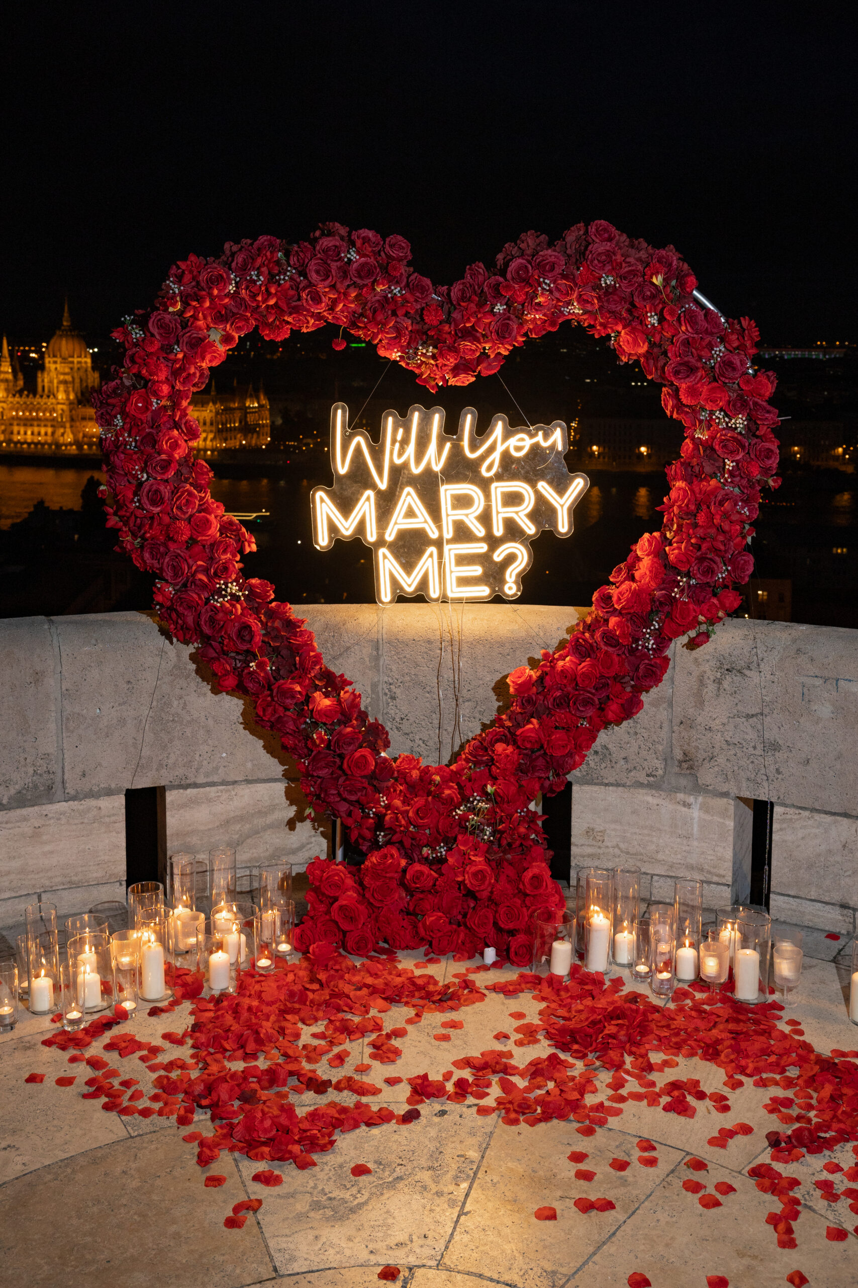 What makes our service truly special is the way we bring each couple’s vision to life. We create custom, fully tailored proposal experiences in the heart of beautiful Budapest from elegant, minimalist setups to lavish, romantic designs. Every detail is carefully planned and executed, so you can simply enjoy the moment.